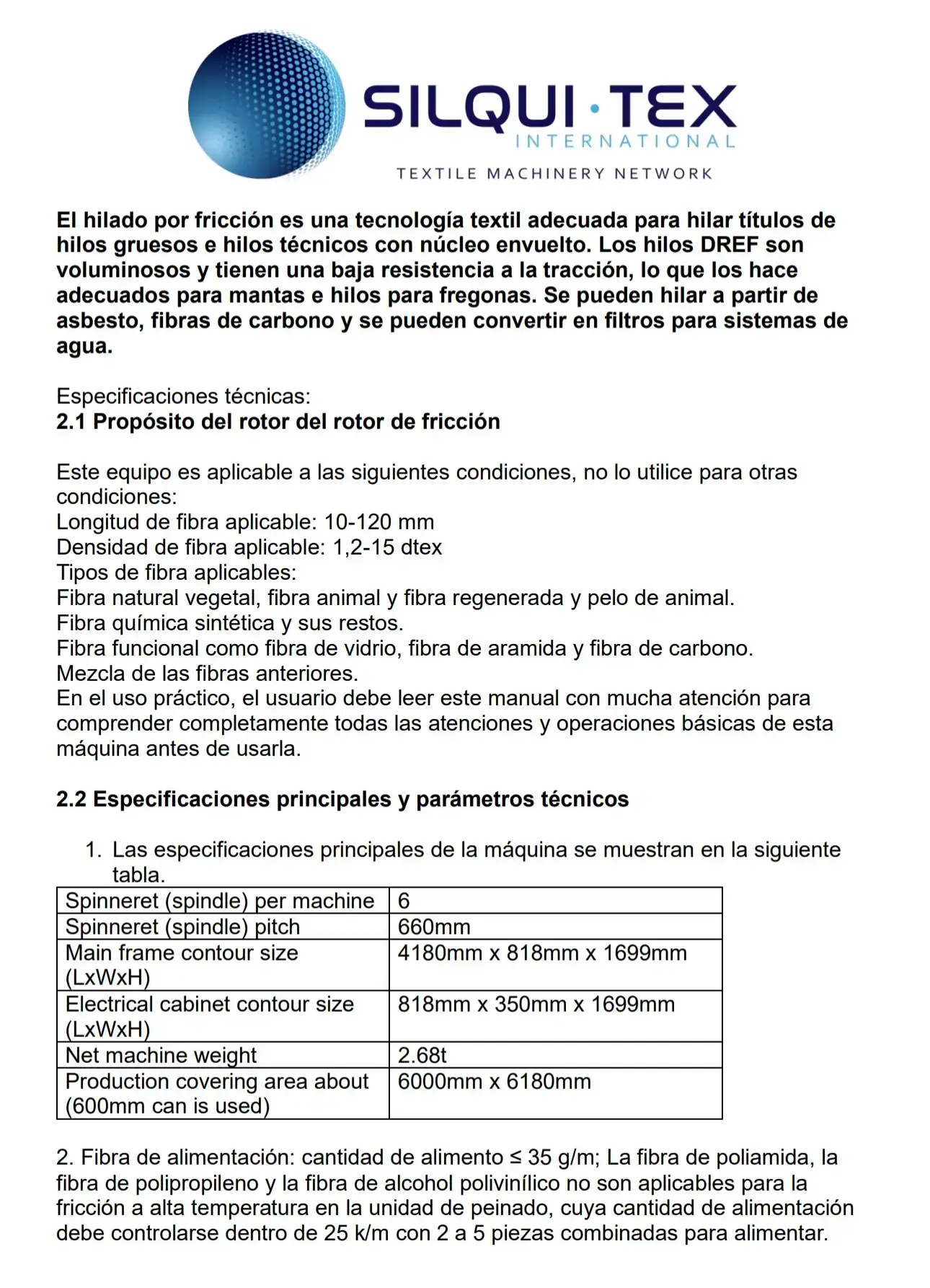 El hilado por fricción es una tecnología textil adecuada para hilar títulos de hilos gruesos e hilos técnicos con núcleo envuelto. Los hilos DREF son voluminosos y tienen una baja resistencia a la tracción, lo que los hace adecuados para mantas e hilos para fregonas. Se pueden hilar a partir de asbesto, fibras de carbono y se pueden convertir en filtros para sistemas de agua.