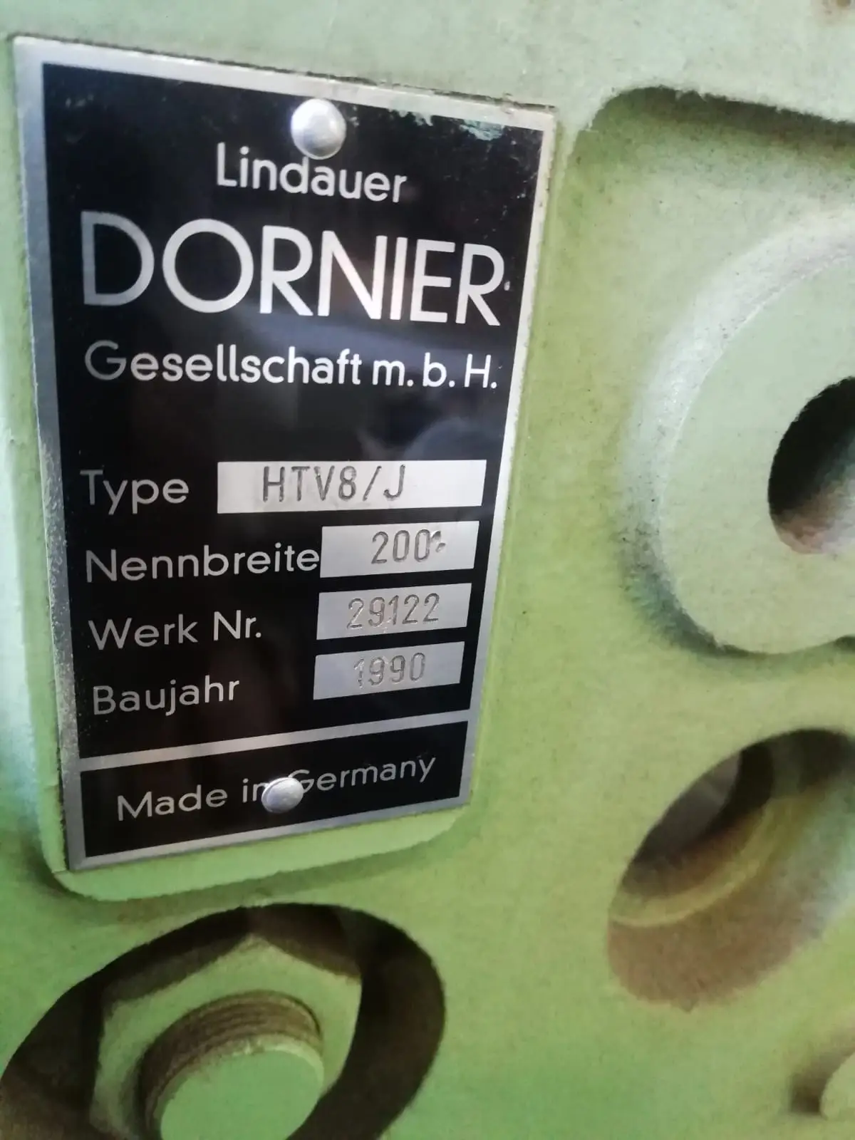 1 telar Dornier HTV 8J de 200 cm año 1990 con desenrollador electronico Ergotron con doble plegador desenrrollador mecanico, acollador mecanico, con jaquard Staubli CX860 de 2688 agujas (cargado al 80%) controlador JC4 del 1995, el harnes esta cortado.